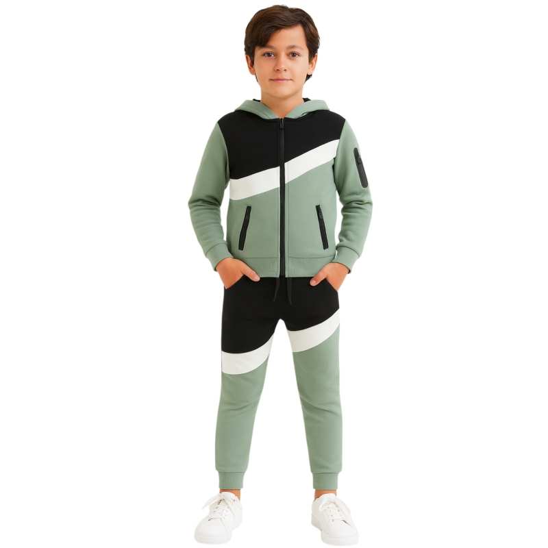 Scopri la nostra tuta da bambino dal look moderno e sportivo, realizzata in tessuto lucido acetato , ideale per garantire comfort e stile in ogni occasione.