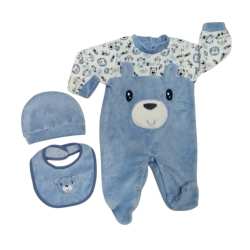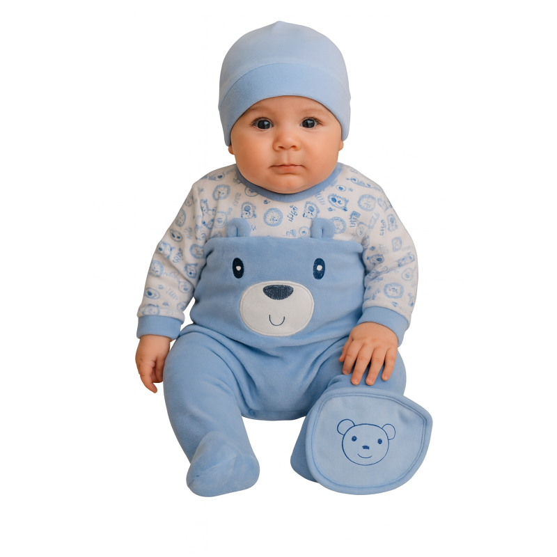 Morbida e confortevole, questa tutina in ciniglia è pensata per avvolgere il tuo bambino con il massimo del calore e della dolcezza. Il set include cappellino coordinato e bavaglino abbinato, per un look completo e curato nei minimi dettagli.