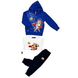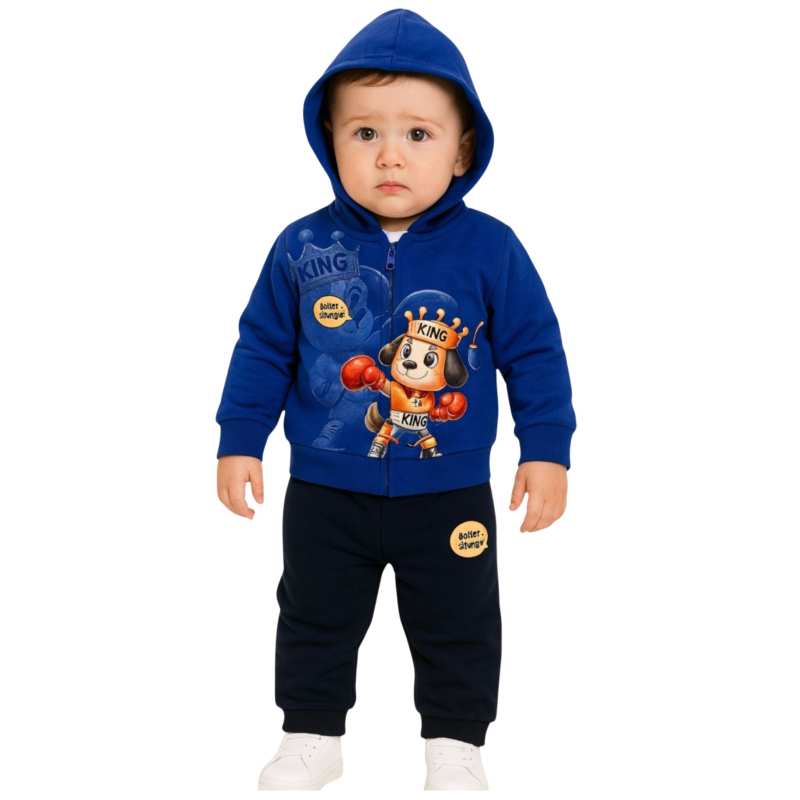 Deliziosa tuta in caldo cotone per bambino composto da felpa con zip, t-shirt a manica lunga e pantaloni tuta coordinati.