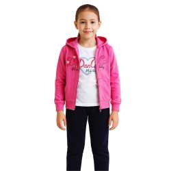 Felpa con zip in tinta unita fucsia con cappuccio e stampa frontale